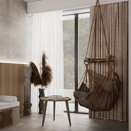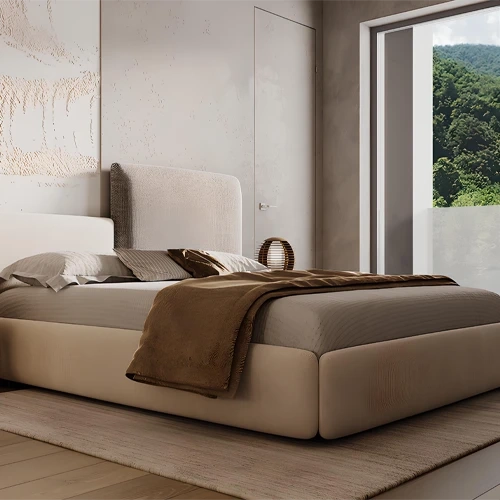 A serene space of balance and quiet luxury. Natural fabrics and tones create an atmosphere of peace. Here, mornings begin softly and nights end in calm.