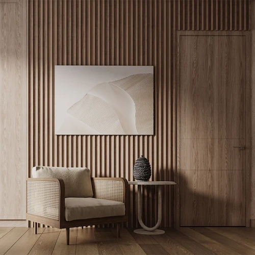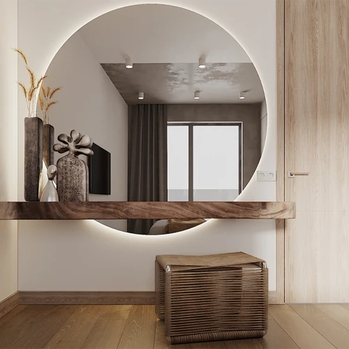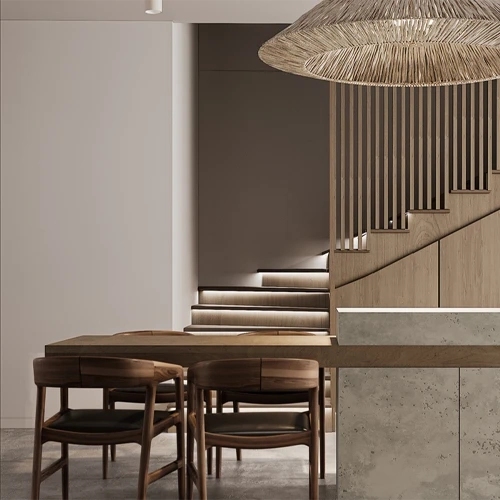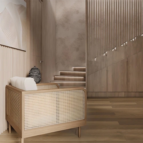 The entrance welcomes you with warmth and elegance. Natural textures and balanced light set the tone of refined comfort. Each step inside feels like coming home.