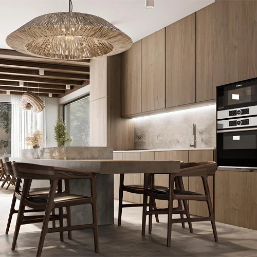 Sleek design meets natural warmth. Subtle tones and textures turn the kitchen into a calm, welcoming space. Every element speaks of simplicity and taste.