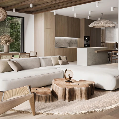 Architecture and nature flow together in quiet harmony. Soft lines and natural materials create a calm retreat for reflection and rest. Every view feels alive and effortless.