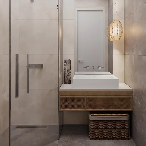 Natural textures and muted tones evoke a spa-like calm. Each surface feels refined and pure. A sanctuary designed for quiet renewal.