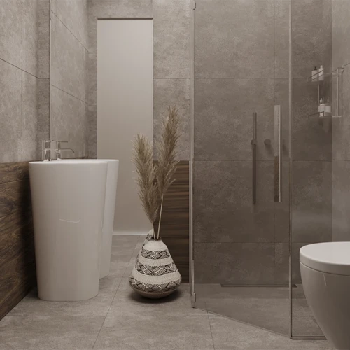 Subtle tones and natural materials make this bathroom a calm, timeless retreat. The refined simplicity brings a spa-like sense of peace. Every moment here feels pure and effortless.