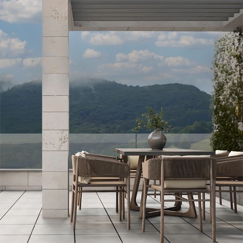 A spacious terrace opens to mountain air and endless views. It’s a place for morning calm and evening glow. Time slows down, and nature feels close.